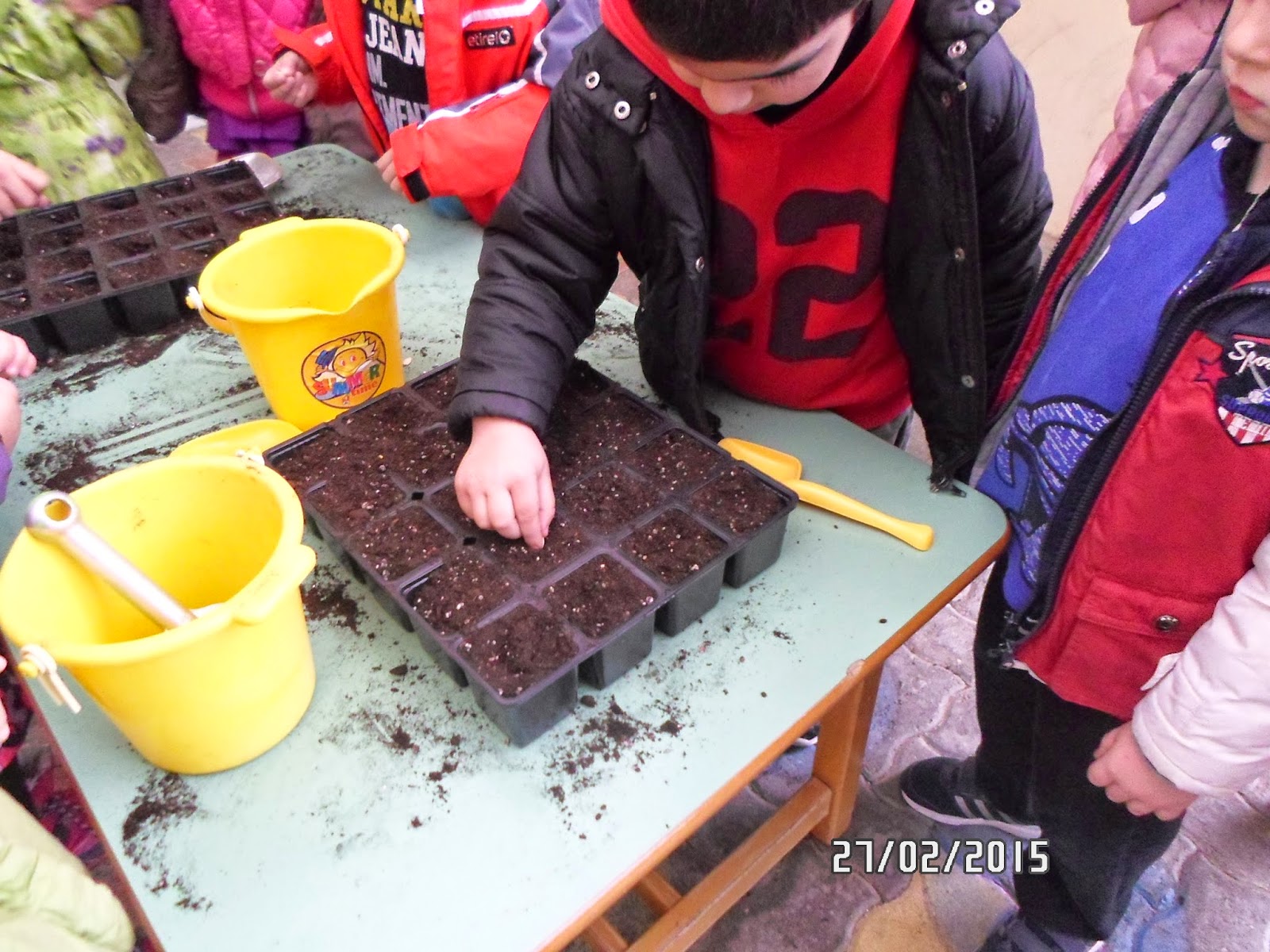 Οι μικροί κηπουροί μας ξεκίνησαν δουλειά ,φυτέψανε σπόρια κολοκυθιού που μας προμήθευσε η ομάδα του "πράσινου σχολείου"και περιμένουν......να φυτρώσουν.
